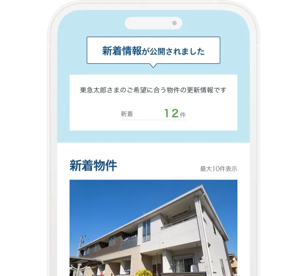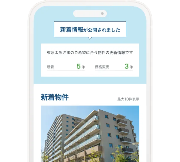 希望条件を設定していただくと、該当する新着物件や物件の更新情報を素早くご提供します