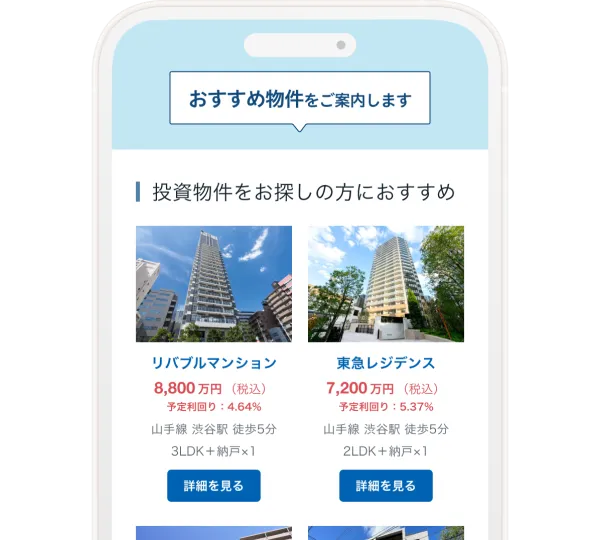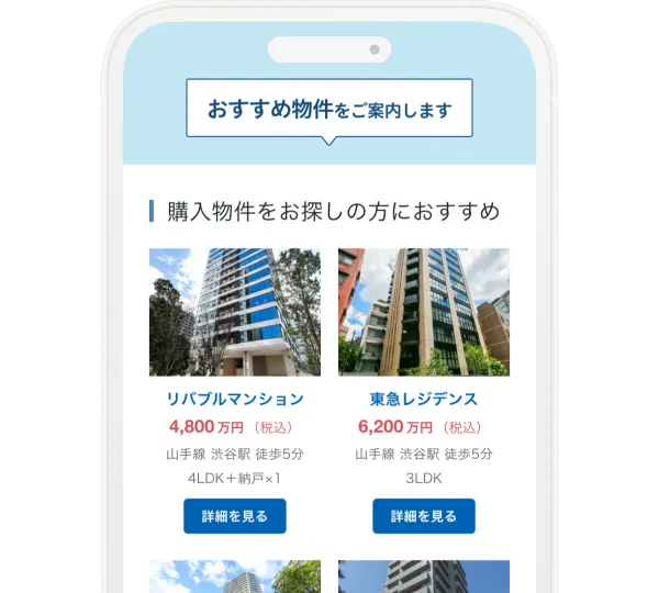 閲覧した物件の傾向をAIが分析し、あなただけのおすすめ物件情報をお届けします