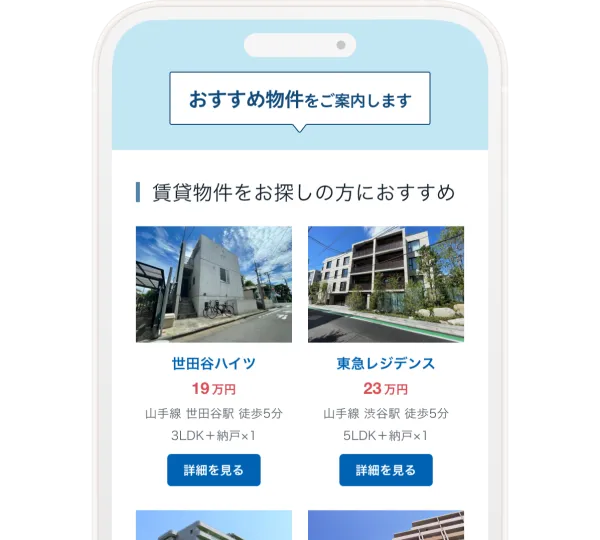 あなたが閲覧した物件の傾向をAIが分析し、あなただけのおすすめ物件情報をお届けします