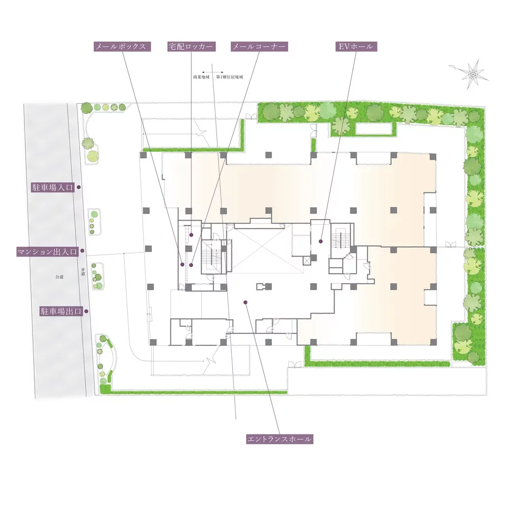 建物の中心に3層のそれぞれ趣きの違うアトリウムが設けられており、採光に優れ、開放的な気持ちのいい空間が広がります。大使館に相応しくヨーロッパの伝統と格式、エレガントな中にもモダンを感じさせるデザインとなっています。また、しっかりとした管理組合の基、広く住まう方の意見も広く取り入れ、マンションの品質を保ちつつ、共用部の防犯性・快適性の向上に積極的に取り組んでいます。