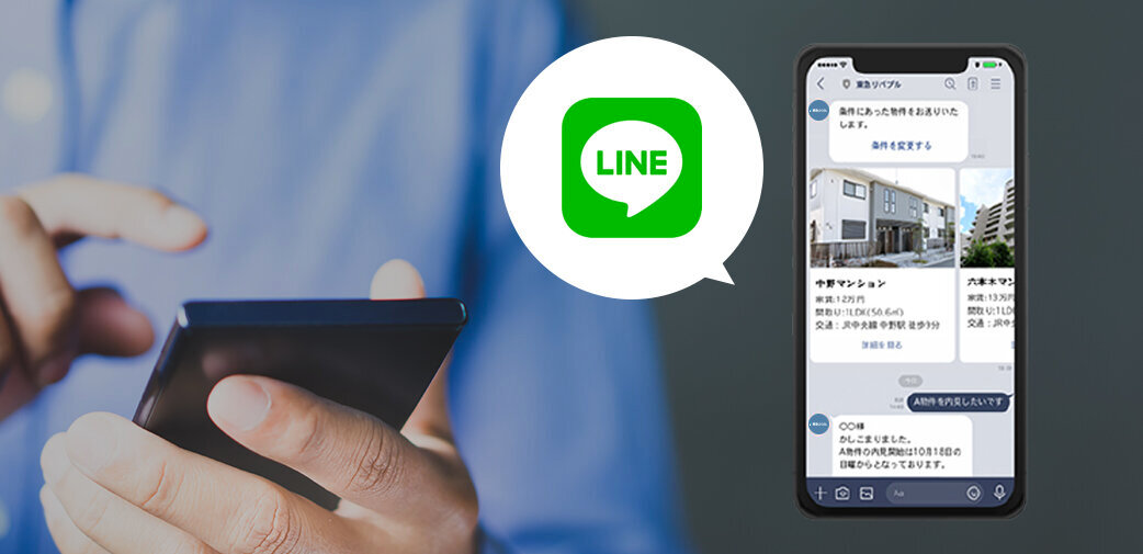 営業担当者からの物件紹介に加えて、システムから自動でお客様のご希望条件に合う物件を、LINEでご紹介しています。
