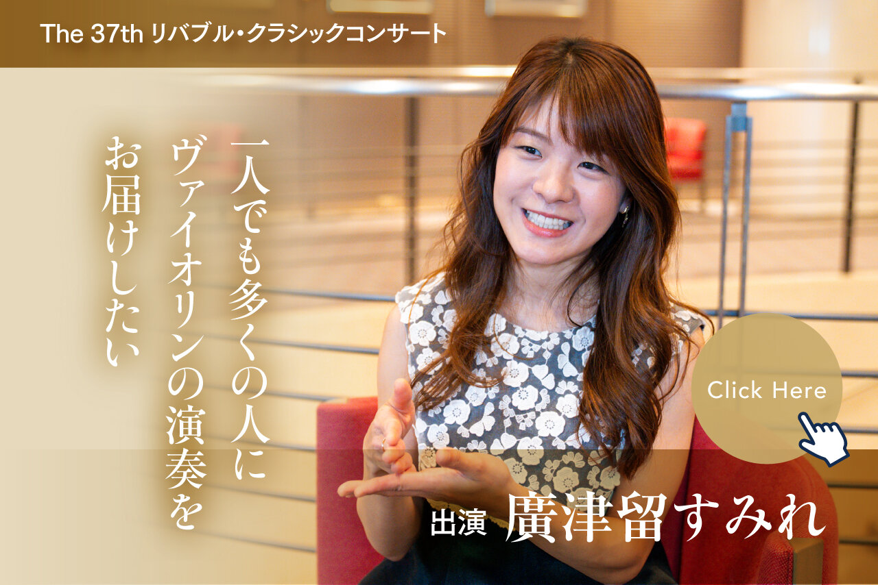 今回のリバブル・クラシックコンサートは、ハーバード大学・ジュリアード音楽院卒という異色のキャリアを持つヴァイオリニスト・廣津留すみれをゲストに名曲の数々をお贈りします。歌詞のないヴァイオリン、そしてオーケストラの「歌」にぜひ耳を澄ませてみてください。指揮は数々のオペラを手掛ける歌心のスペシャリスト、園田隆一郎。ヴァイオリンをこよなく愛する坪井直樹のご案内のもと、東京フィルハーモニー交響楽団の華麗な演奏をお愉しみください。