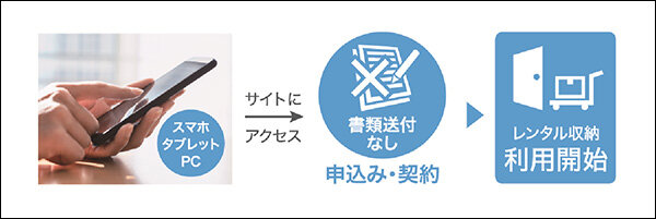 本施設では、パソコンやスマートフォン、タブレット端末等からのインターネットによる契約システムを導入しており、時間や場所を問わず利用申込・契約ができます。また、入館カードにお客様がお手持ちのPASMOまたはSuica(※)を、各レンタル収納スペースの施錠に暗証設定ダイヤル錠を採用することにより専用鍵の持ち運びが不要となり、外出中の急な利用にも大変便利です。さらに、収納物にとっての最適な空調環境を保つための24時間温度・湿度管理、防犯カメラを各所に配しての24時間遠隔監視など、安心してご利用いただける施設となっております。