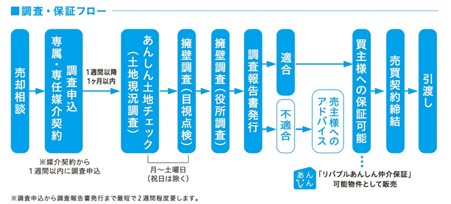 | 調査条件 | 媒介契約締結後1週間以内に調査申込み、かつ1ヵ月以内に調査実施すること |