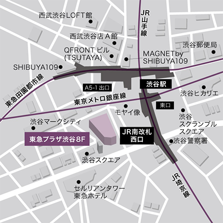 | 交 通 | JR山手線・埼京線・湘南新宿ライン 「渋谷」駅 徒歩約1分 東急東横線・田園都市線、京王井の頭線、東京メトロ 半蔵門線・ 銀座線・副都心線 「渋谷」駅 徒歩約3分 |