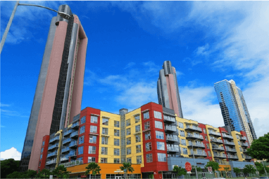 コンドミニアムとは日本でいう分譲マンションのことです。コンシェルジュや管理人が常駐しているところが多く、セキュリティ面で安心できる不動産です。建物の共用部分は管理会社によりメンテナンスされており、プールやジム設備、BBQカバナやパーティールームといった施設を利用することもできます。オーナーご自身がしばらくお部屋を使わない場合、賃貸に出すこともできます。