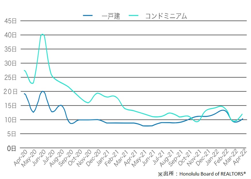 *コンドミニアム(Honolulu Board of REALTORS 2021年11月~2022年4月。直近6ヶ月平均)
