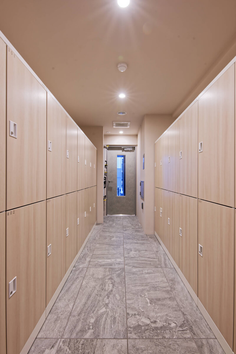 1階共用部に各住戸専用のプライべートロッカーを設置。ペットのお散歩用品やジム用品、防災備蓄用品等、幅広い商品を収納可能です。