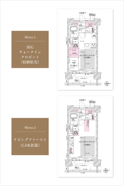 「大きな収納部屋が欲しい」「LDKをもっと広々使いたい」そんな要望を叶えるメニュープランを複数用意。