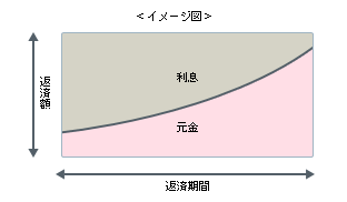 借入れ当初、返済金額が多く、負担が重い。 元利均等返済に比べ、借入額が少なくなり、借入れ希望額が借りられない場合がある。 |