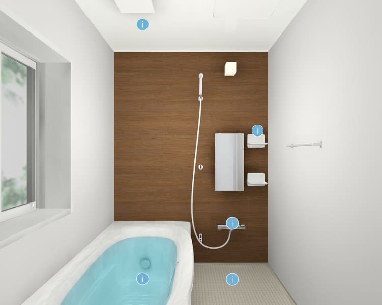 滑りにくい「イージードライフロア」をはじめ、汚れの付きにくい折れ戸タイプドア、浴槽に入り易いまたぎの高さなどをコンパクトにまとめました