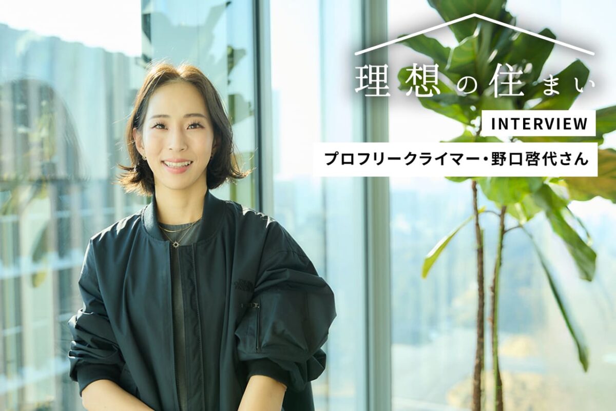 憧れのライフスタイルを送る話題の人に、暮らしと住まいのこだわりをお聞きする本企画。今回登場いただくのは、“日本女子クライミング界のパイオニア”として多くの記録を持ち、現在はプロフリークライマーとして活躍する野口啓代(のぐちあきよ)さんです。現役のスポーツクライマーである夫・楢崎智亜選手、1歳の娘さんとともに暮らすご自宅のこだわりや、アスリート同士のご夫婦ならではの貴重なエピソードをお話いただきました。