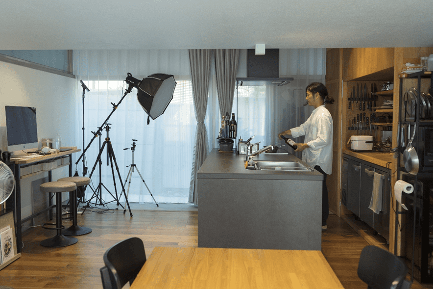 家族で暮らす自宅兼撮影スタジオ。“見せる”キッチンは、清潔感を保つ工夫が