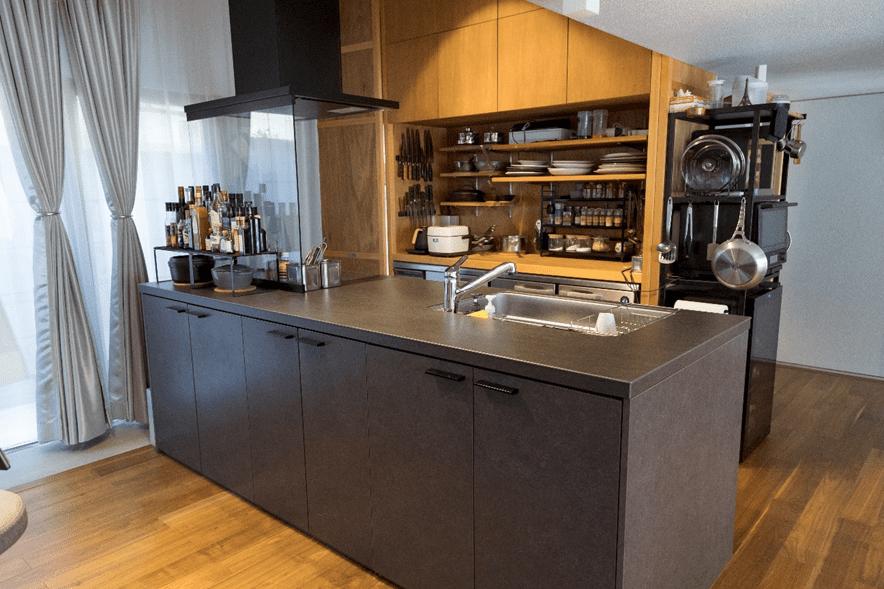 ジョージさん「料理人なので、キッチンの機能面が優れていないと仕事になりません。使いやすさを求めた結果、綺麗なキッチンが保てて、いわゆる“オシャレなキッチン”も実現できているのかなと思っています」