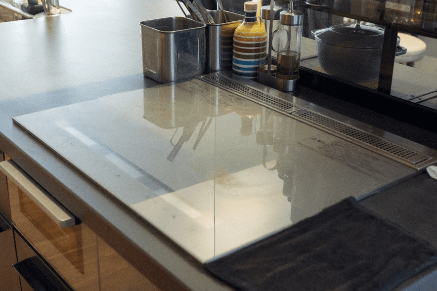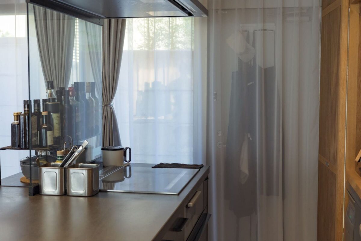 ジョージさん「コンロも掃除しやすいようにIHです。プロでもIHを使うんですか!? と聞かれることもありますが、実はフランス本国の調理場は、ミシュラン三ツ星の店も含めほとんどIHなんです。火力が調整しやすく、均一に火が入るので良いことだらけです。また、コンロに向って右側にも大きな窓があることで、光が差し込む空間で炒め物ができるのも個人的に気に入っています」