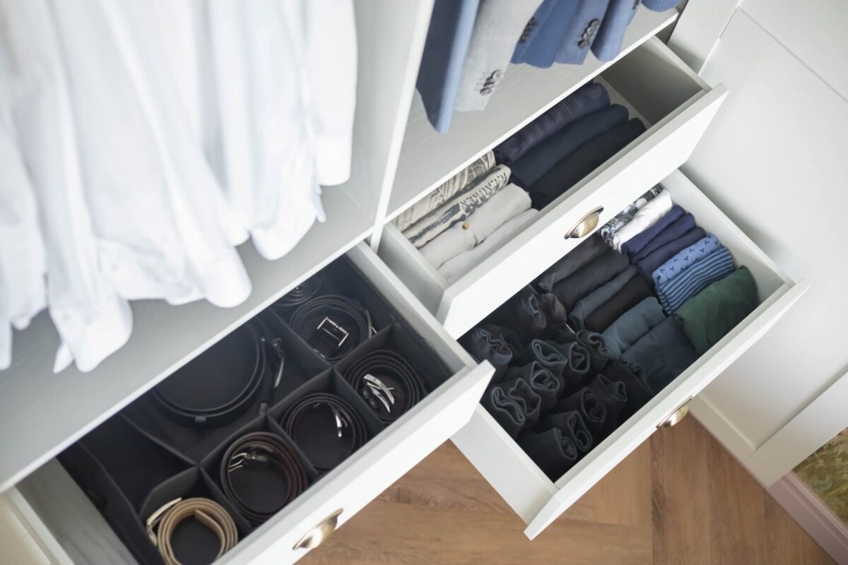 引き出しのなかは、収納する洋服や小物に合わせて細かく区切りましょう。