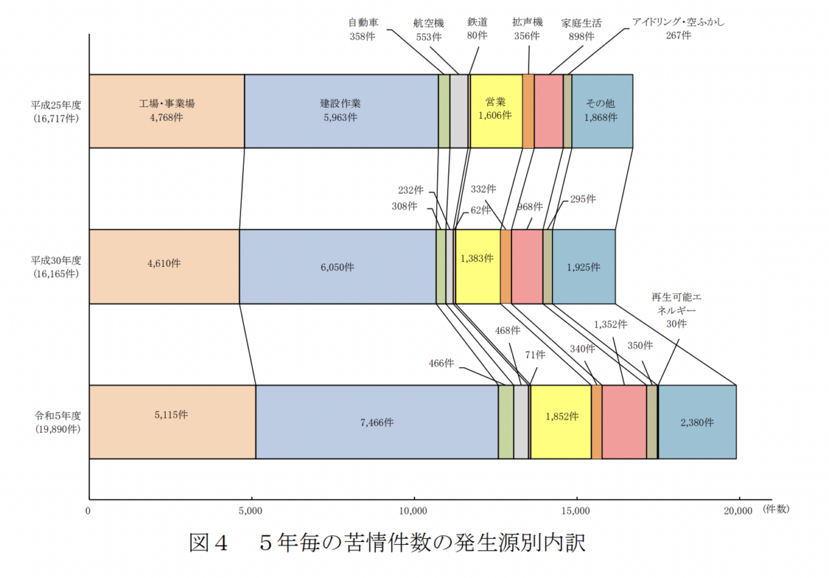 近年、家庭生活に起因する騒音問題への注目が集まっています。環境省が公表した「騒音規制法等施行状況調査の詳細」によると、2023年度に全国の地方公共団体が受理した騒音に関する苦情件数は19,890件にのぼります。