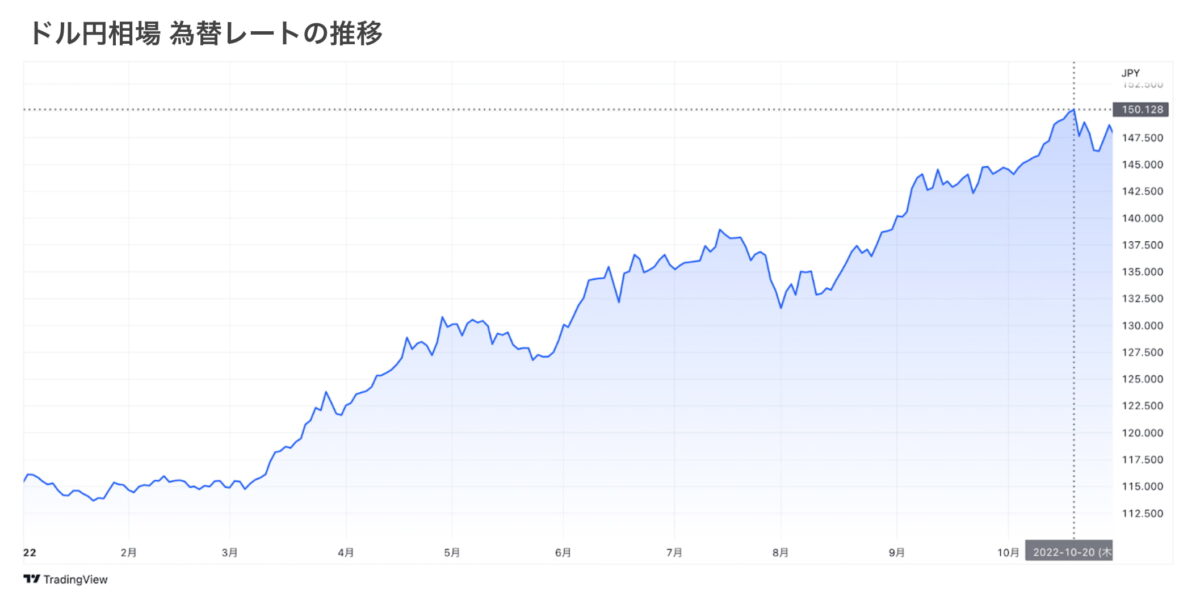 東京外国為替市場の円相場は10月20日、一時「1ドル=150円」まで値下がりしました。ここまで円安が進んだのは、実に32年ぶりのことです。