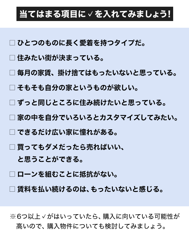 詳しくは「賃貸のメリット、デメリットは?」をご確認ください。