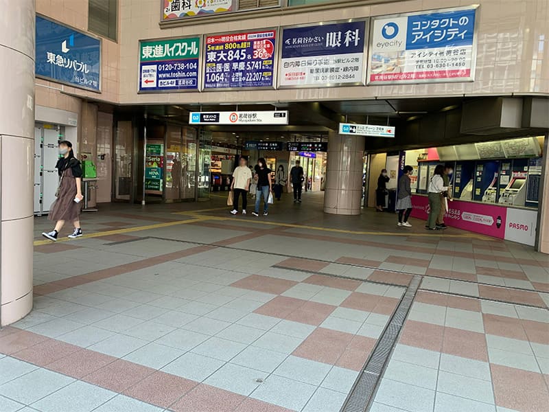 東京メトロ丸ノ内線茗荷谷駅で下車し地上へ。駅には2階建ての駅ビルが備わっており、銀行、歯科医院、100円ショップ、不動産店、ネイルサロンなどが入っています。