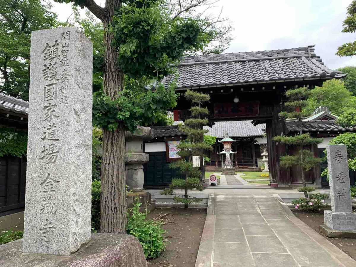 来た道に戻り、歩いていきます。バス通りに出たら右へ行き2つ目の道を右折。道なりに進んで突き当りを左に行って1つ目を右、左へ行くと「金蔵寺」があります。ここは、横浜七福神の1つで寿老人が祀られているお寺。裏山にある日吉社には日吉山王権現が祀られており、地名の起源となっています。