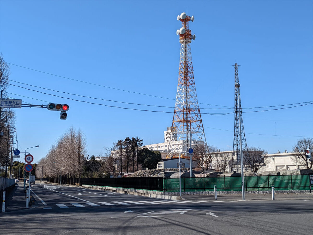 県道216号線を直進すると、自衛隊駐屯地前の自衛隊入り口交差点に到着します。