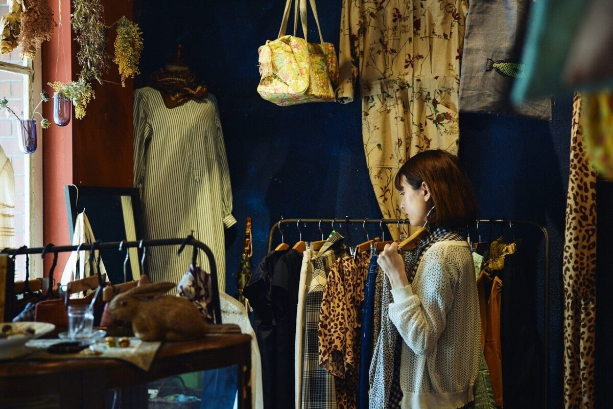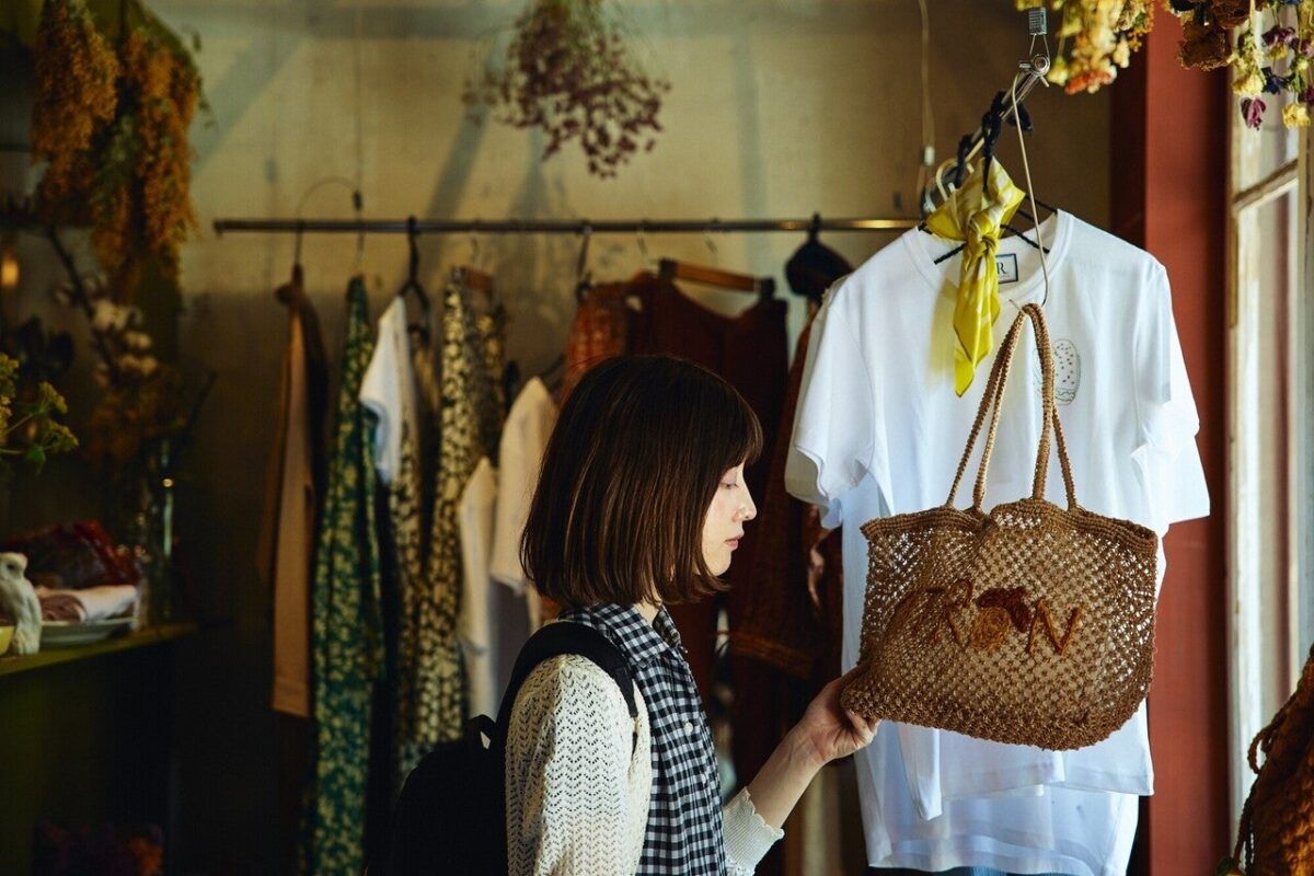 こんなに色数が多くても、空間として調和して見えるのは、店内の至る所に吊るされたドライフラワーなどの存在も大きいのでしょうか。身に着けるだけで気持ちが晴れやかになりそうな商品たちを目の前に、ついつい時間を忘れてしまいそうになります。