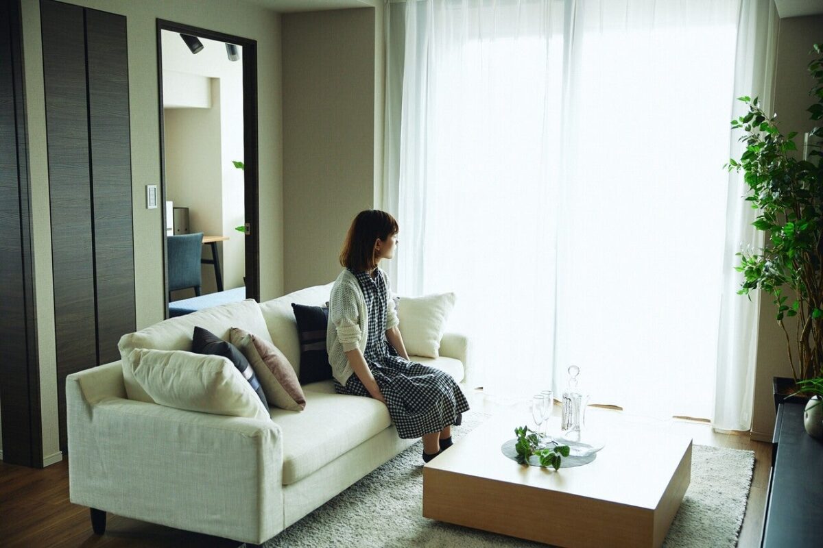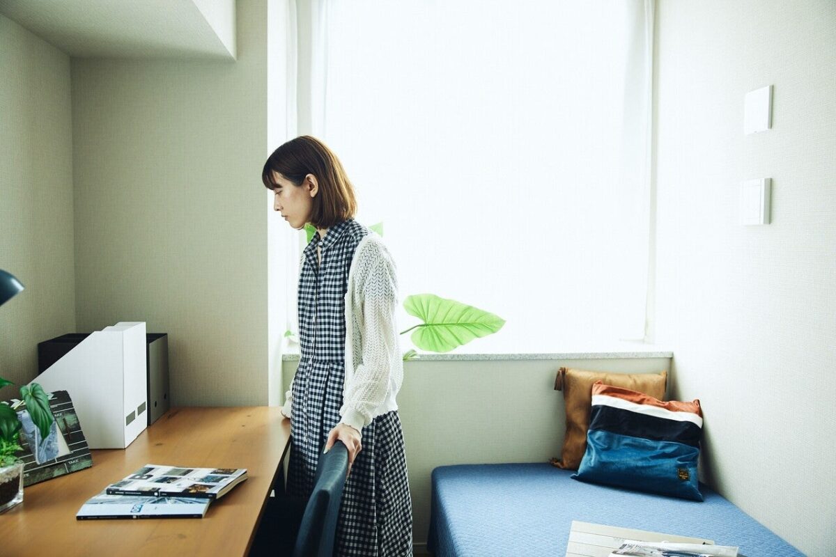 落ち着いたトーンの部屋の中に差し込む、大きな窓からの光。きっと、ゆるやかな時間を過ごせそう。