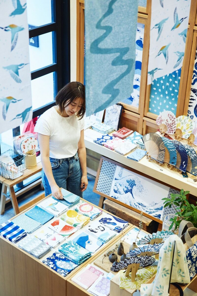 入店するやいなや、あたり一面に広がるてぬぐいの数々。この日は雨でジメジメしていたけど、それを吹き飛ばすような清涼感が漂います。てぬぐいって、こんなにも色鮮やかだったんですね。