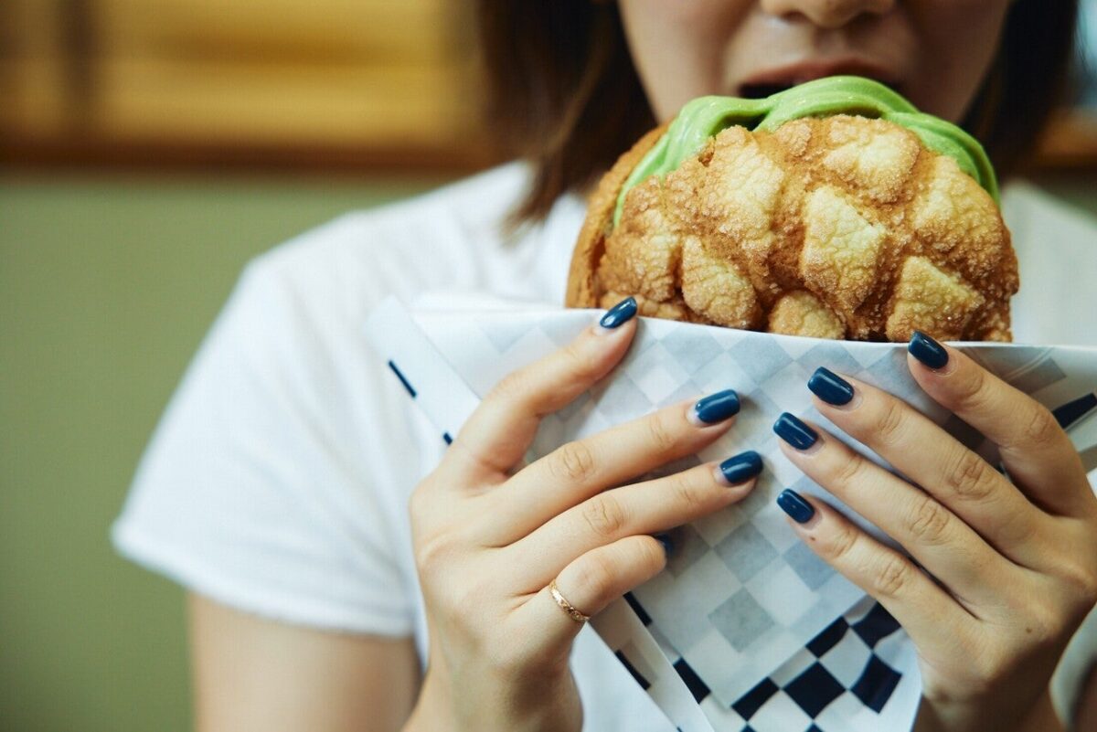 思っていたよりも重くなくて、美味しい。ただ、道行く人が大きなメロンパンにかぶりつく構図が少し可愛くて、面白い光景だなとも思いました。