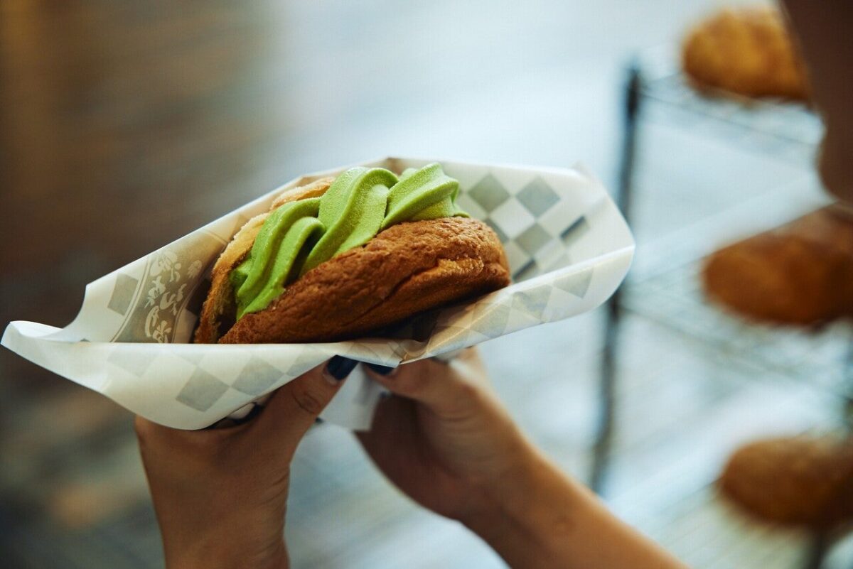 大きい。ジャンボとは聞いていたけど、確かに大きい。サービス精神旺盛です。欲張って抹茶アイスをサンドしたので、さらにボリューム満点。
