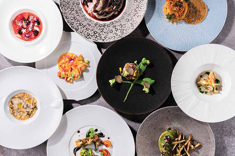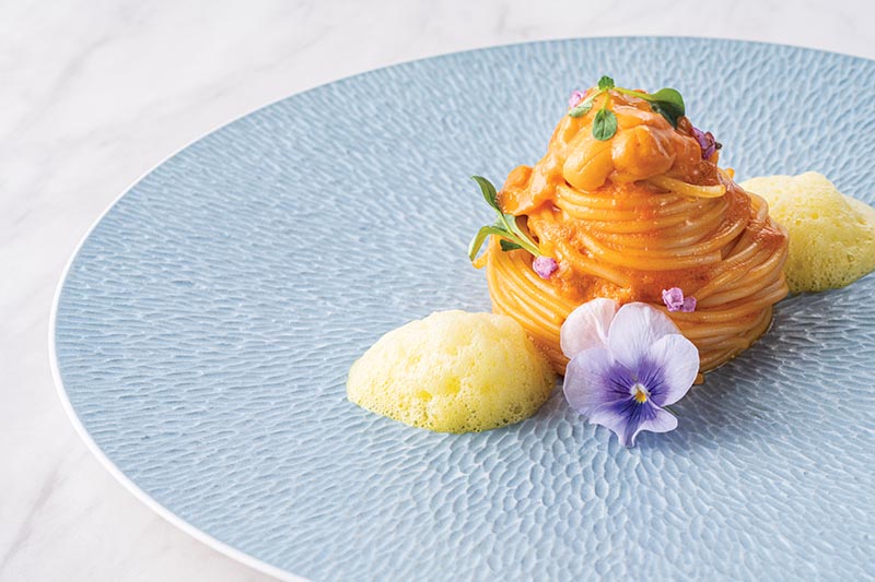 都会の喧騒から隔絶されたヴェネツィアンガラスのシャンデリア、開放感と高級感を兼ね備えた噴水のあるテラスといった食空間はまさに「OZIO=優雅な暮らし」を冠するにふさわしい。ブレックファーストからディナーまで、いつ訪れても最高の料理を楽しめる1軒だ。