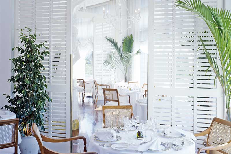 「ホテルザ・マンハッタン」の2階、白亜のリゾート空間で、ロッシーニをはじめ洗練されたフレンチを提供するレストラン。フォアグラや黒トリュフなどの素材をいかした、極上のメニューを楽しむことができる。顔合わせや、接待など6、7名の小人数グループで食事ができる半個室のセミプライベートルームも用意されており利用の幅は広い。