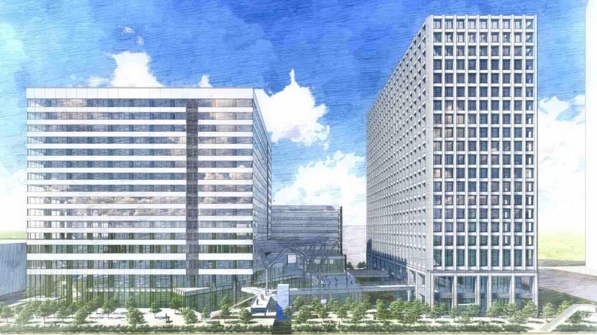 当街区は、現在、IHIが暫定利用として自己所有土地を賃貸していますが、2021年度内に既存建物の解体工事が行われ、新築計画は2022年春着工、2025年春竣工を目指しています。 本計画は2棟の建物で構成され、主要用途となるオフィスのほか、低層部に大屋根を設けた広場空間と、広場を取り囲むような商業施設を配置し、施設利用者だけでなく、周辺街区の居住者や就業者等、さまざまな人々が集い、まち全体のにぎわい創出に寄与する開発とする予定です。