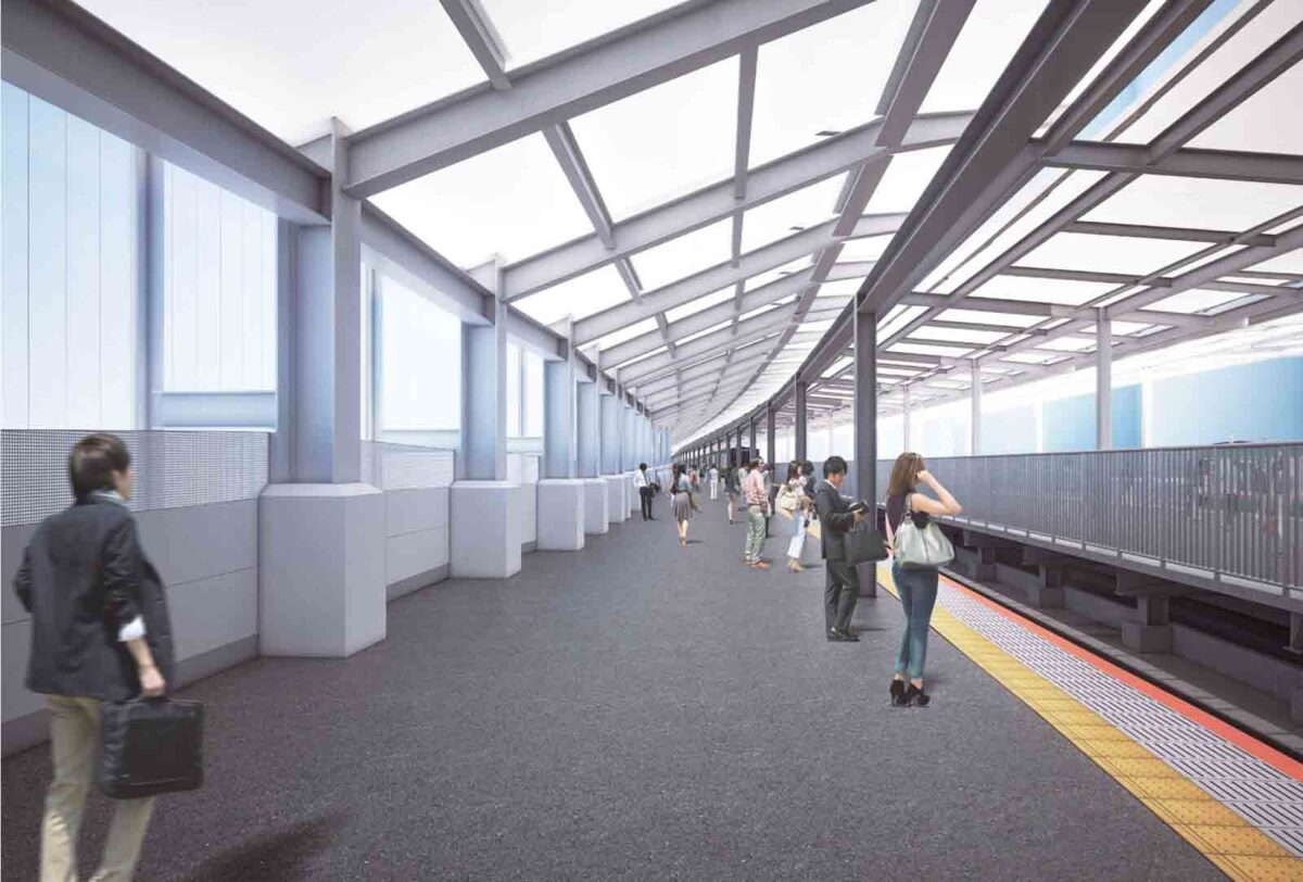 ※新規改札口及び現ホーム下り線側の柵は、新下りホーム供用開始後の設置となります。