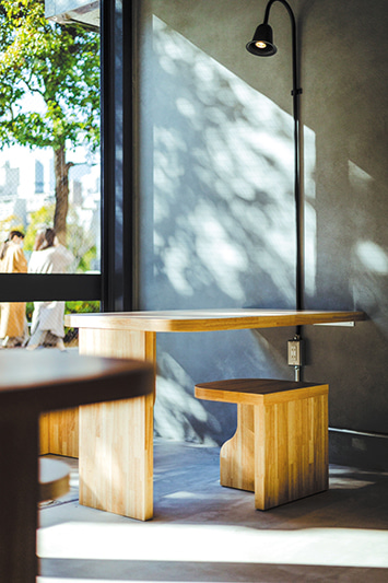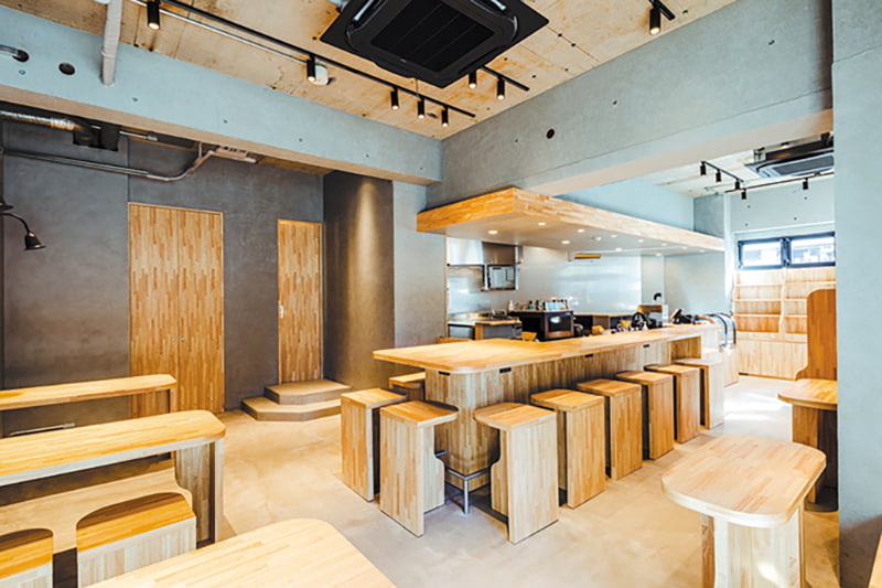 木の温もりと近未来的な無機質が融合した店内には、安堵感と高揚感が同居する。店内の通路は広めに設定されているので、ベビーカーを使う子育て世代も気兼ねなく利用可能だ。全席に電源が備えられており、Wi-Fiも完備。ちょっとしたモバイルワークにも重宝する1軒だ。