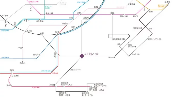 最寄りの「天王洲アイル」駅から都内の主要なスポットへは、以下の所要時間で到着できます。