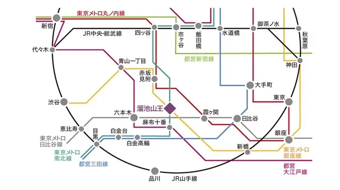 最寄り駅の「溜池山王」駅は東京メトロ銀座線の駅。また、東京メトロ南北線「六本木一丁目」駅(徒歩5分)、東京メトロ日比谷線「神谷町」駅(徒歩9分)、東京メトロ千代田線「赤坂」駅(徒歩13分)、東京メトロ日比谷線、都営地下鉄の大江戸線が利用できる「六本木」駅(徒歩18分)と、複数の駅が徒歩圏内にあるので、毎日の通勤やお出かけが非常に便利です。
