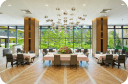 マンション全体が高齢者の方に配慮されており、介護事業所やクリニックなどが併設され、大浴場や娯楽施設なども充実。分譲マンションなので所有権があり、資産として残すことができる点も大きなメリットです。