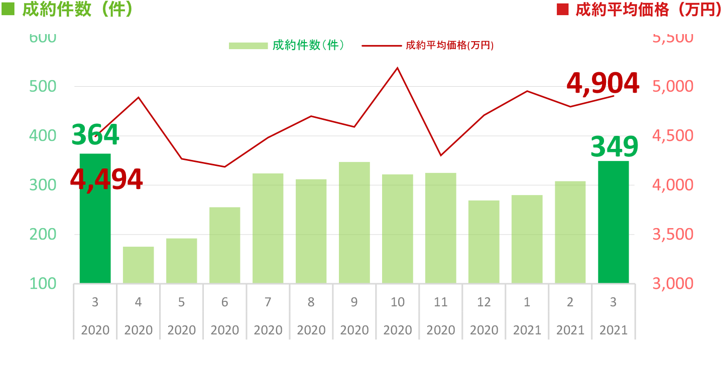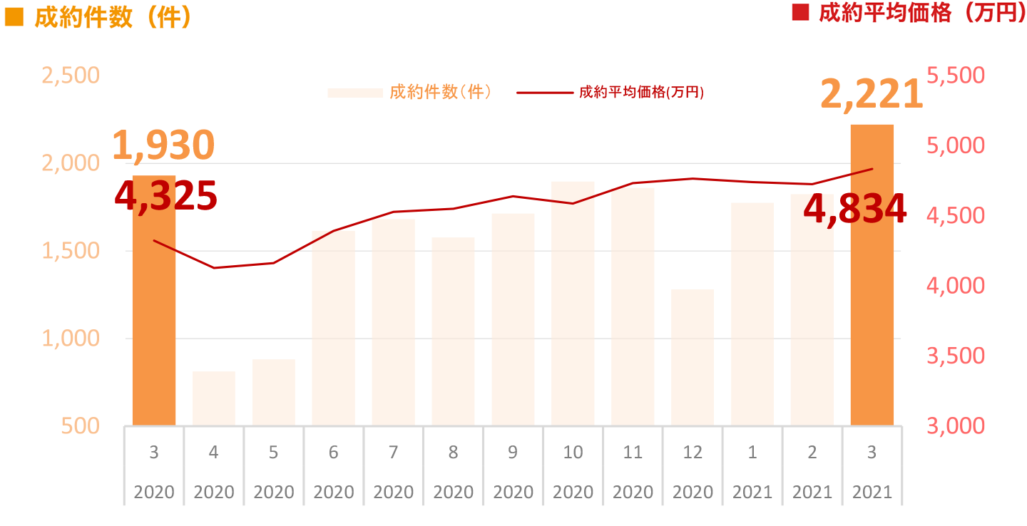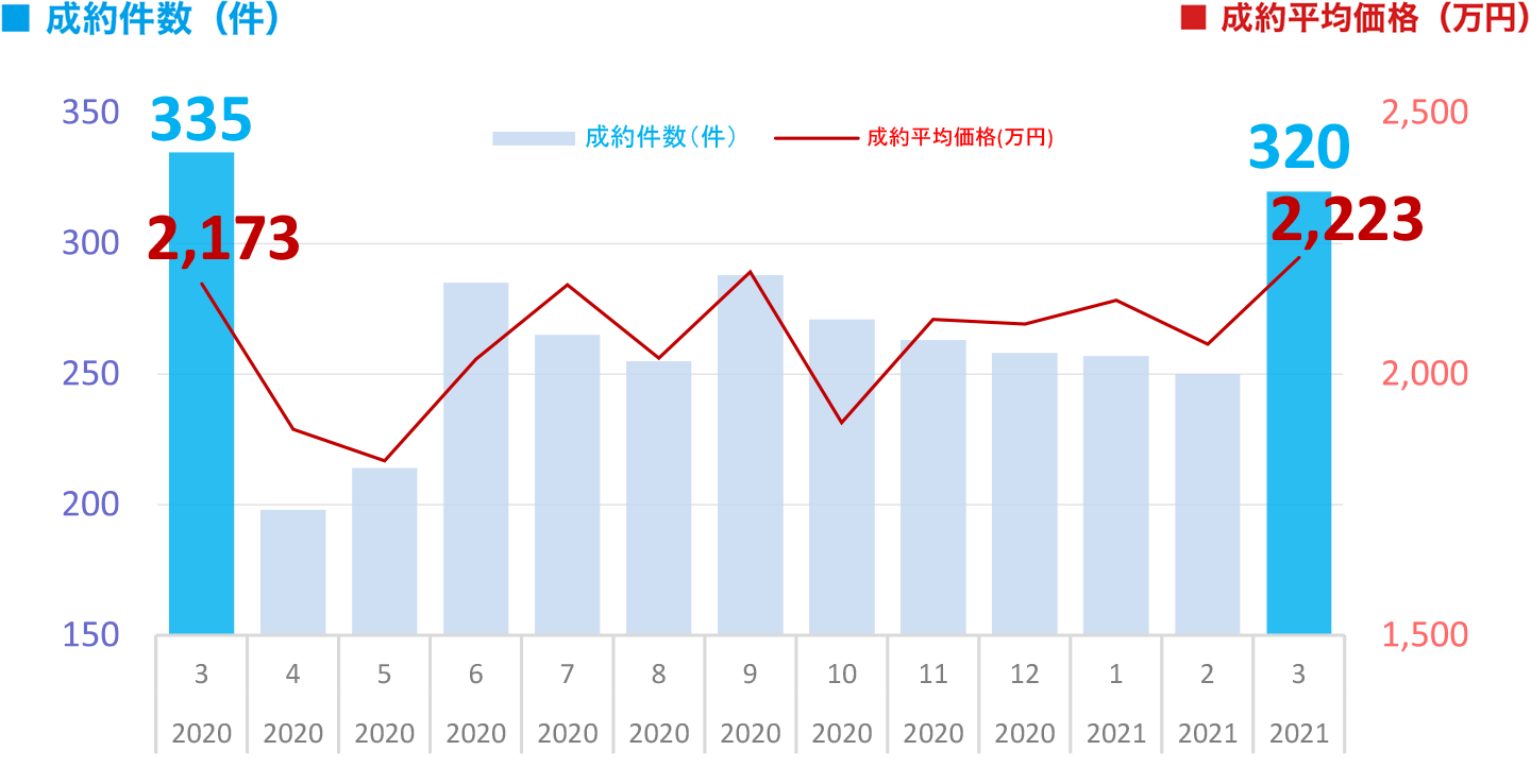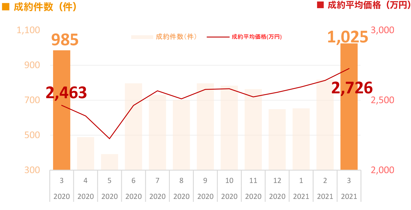 ※本ページ及びグラフは、財団法人東日本不動産流通機構『2021年3月度Market Watch』(全国版)に基づき、東急リバブル㈱が作成いたしました。