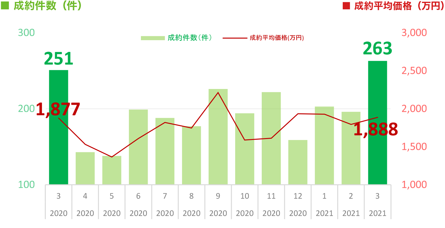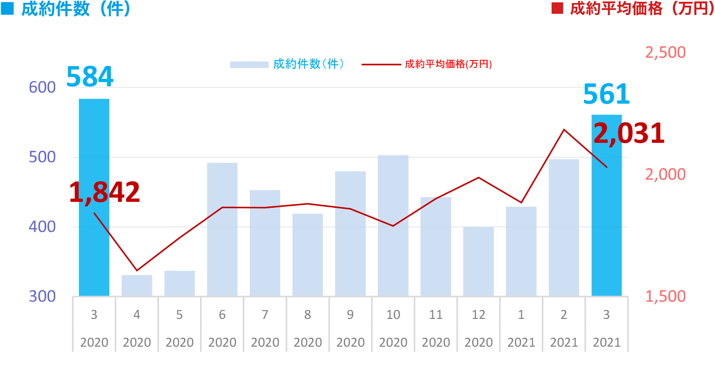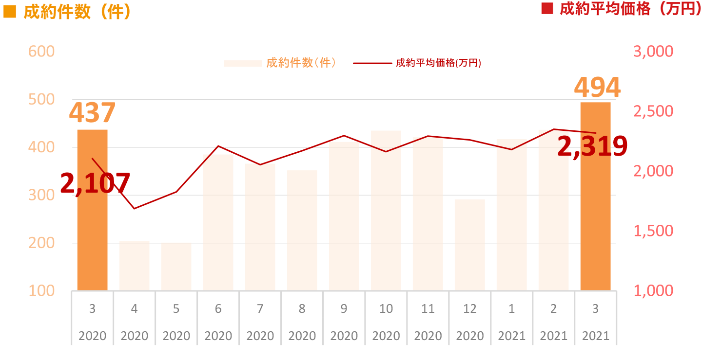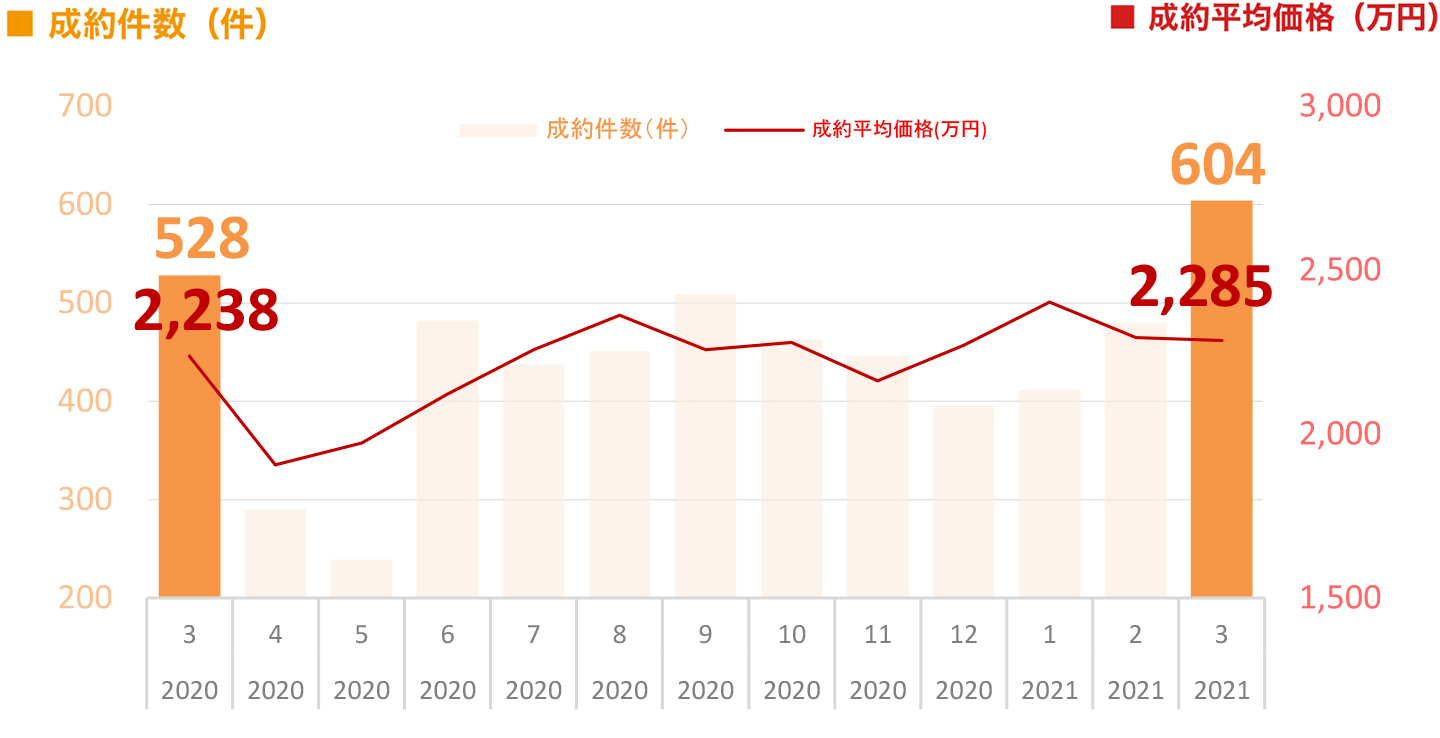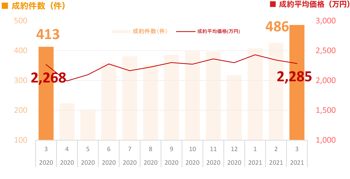 ※本ページ及びグラフは、財団法人東日本不動産流通機構『2021年3月度Market Watch』(全国版)に基づき、東急リバブル㈱が作成いたしました。