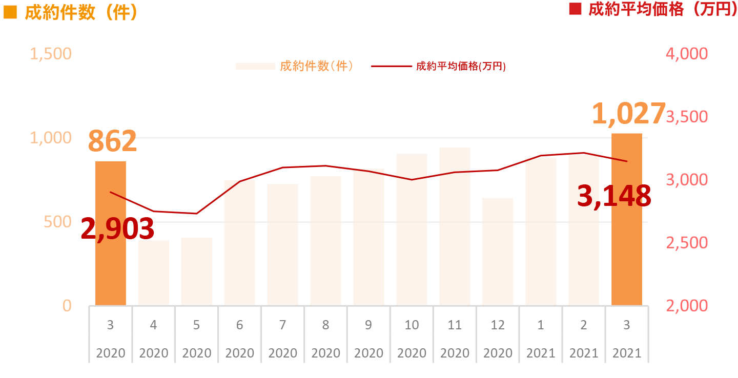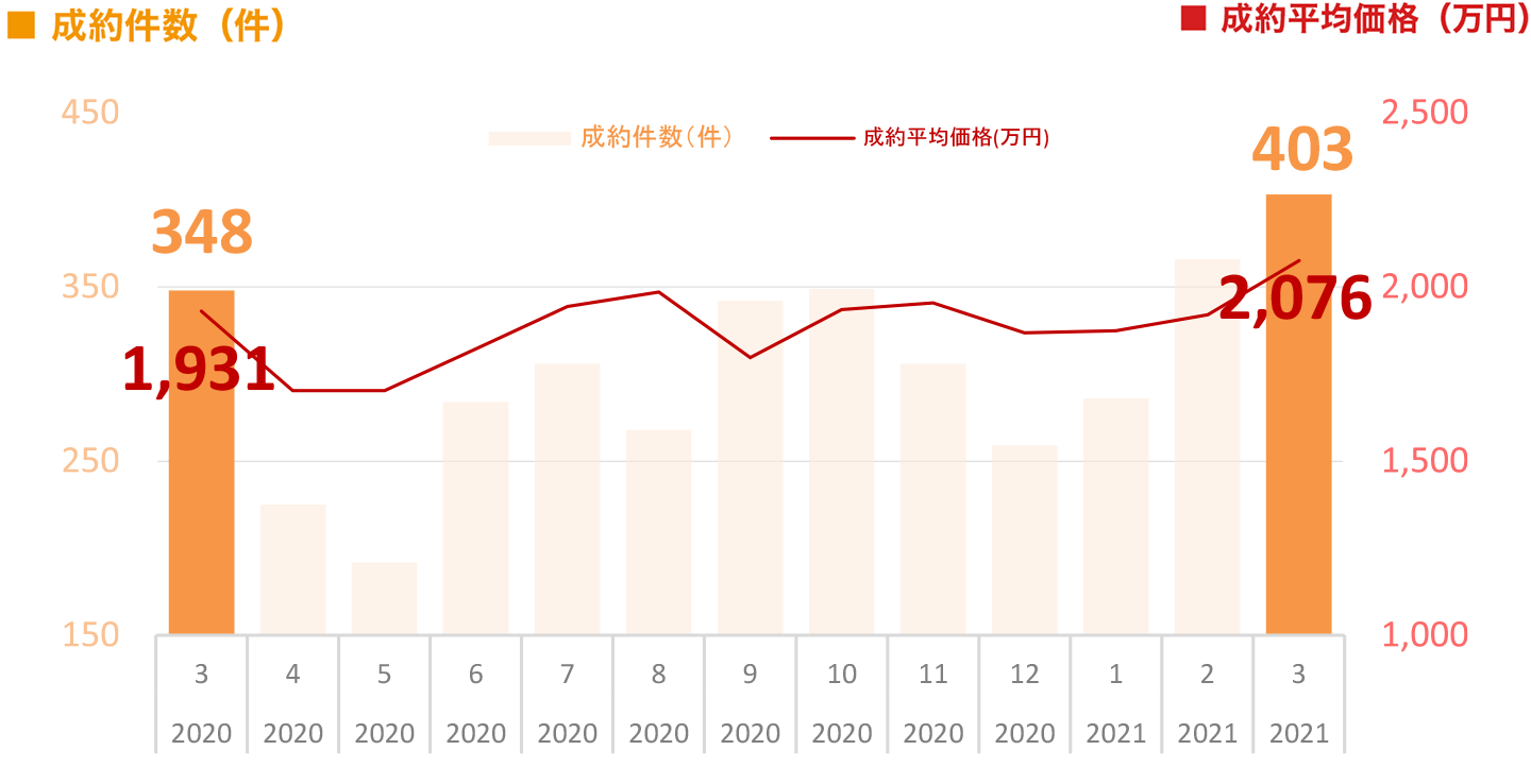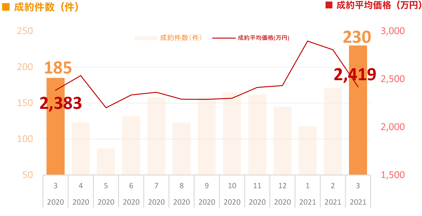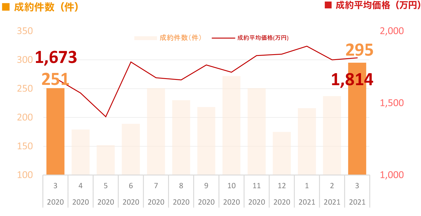 ※本ページ及びグラフは、財団法人東日本不動産流通機構『2021年3月度Market Watch』(全国版)に基づき、東急リバブル㈱が作成いたしました。