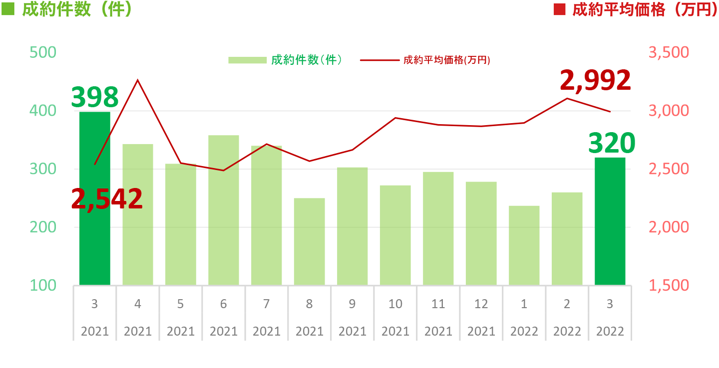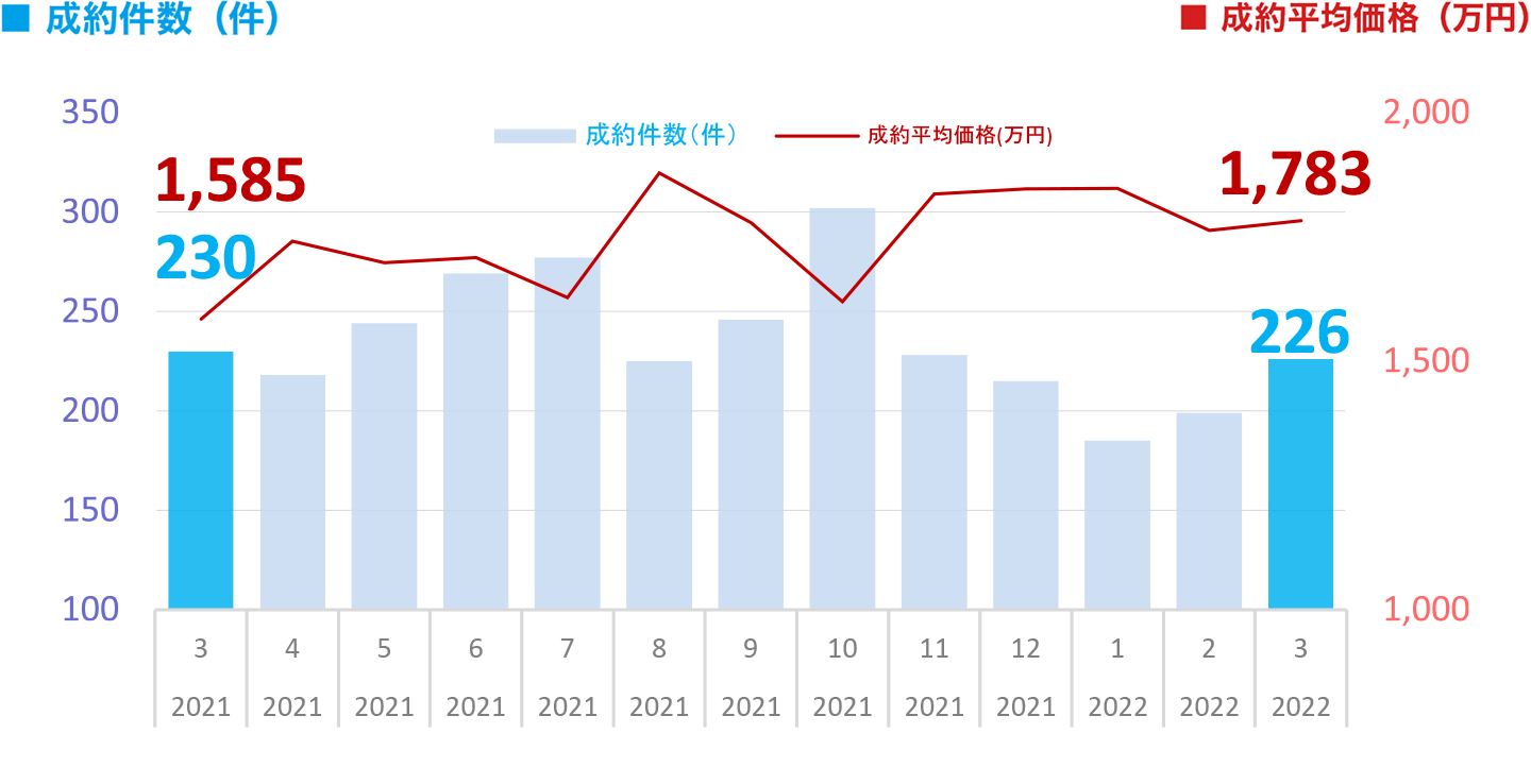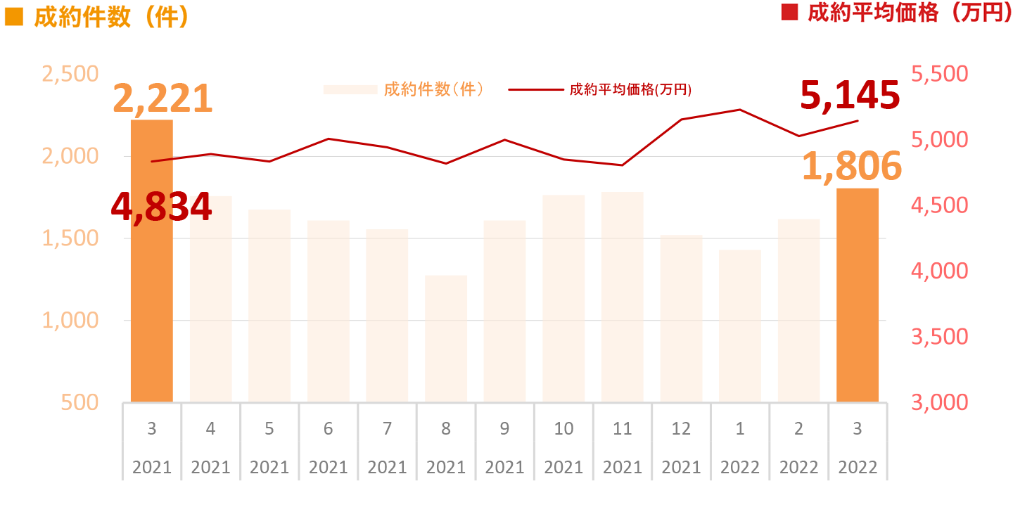 ※本ページ及びグラフは、財団法人東日本不動産流通機構『2022年3月度Market Watch』(全国版)に基づき、東急リバブル㈱が作成いたしました。