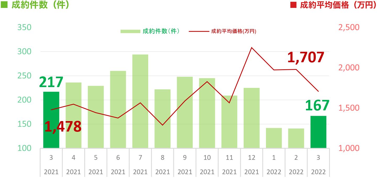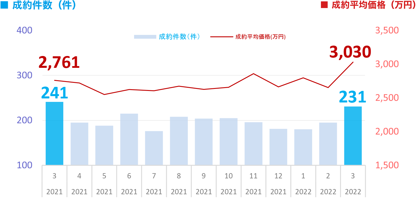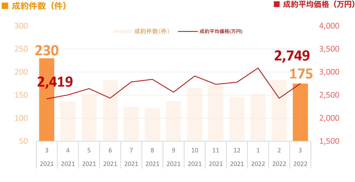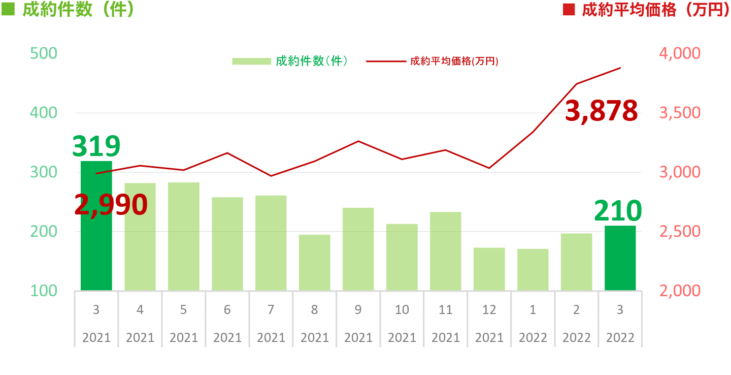 ※本ページ及びグラフは、財団法人東日本不動産流通機構『2022年3月度Market Watch』(全国版)に基づき、東急リバブル㈱が作成いたしました。