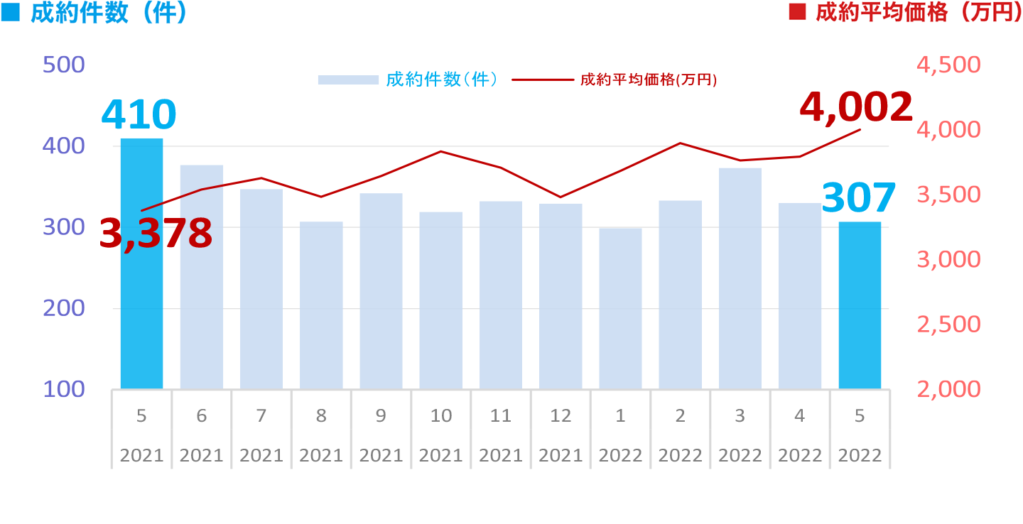 ※本ページ及びグラフは、財団法人東日本不動産流通機構『2022年5月度Market Watch』(全国版)に基づき、東急リバブル㈱が作成いたしました。