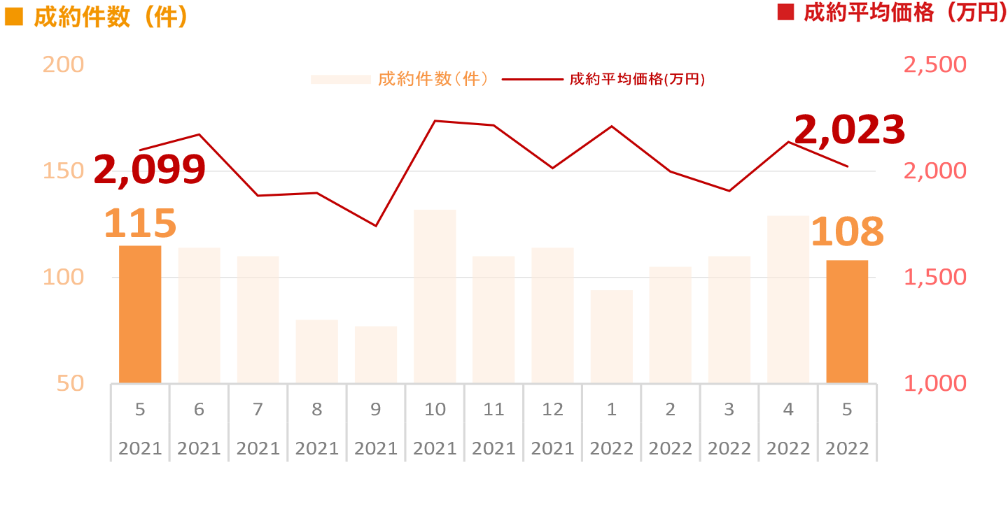 ※本ページ及びグラフは、財団法人東日本不動産流通機構『2022年5月度Market Watch』(全国版)に基づき、東急リバブル㈱が作成いたしました。