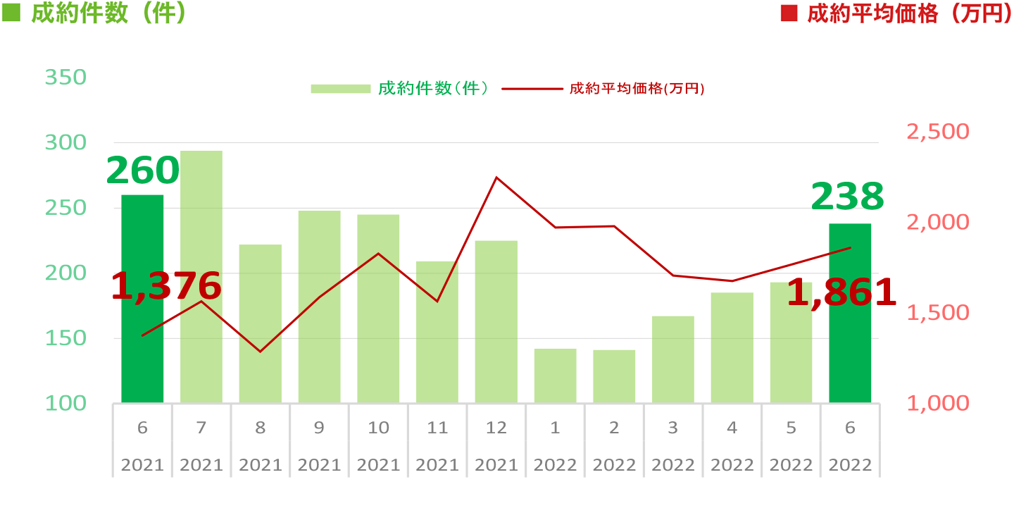 ※本ページ及びグラフは、財団法人東日本不動産流通機構『2022年6月度Market Watch』(全国版)に基づき、東急リバブル㈱が作成いたしました。