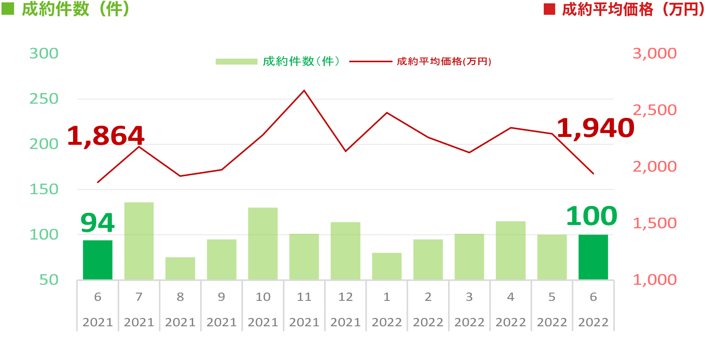 ※本ページ及びグラフは、財団法人東日本不動産流通機構『2022年6月度Market Watch』(全国版)に基づき、東急リバブル㈱が作成いたしました。