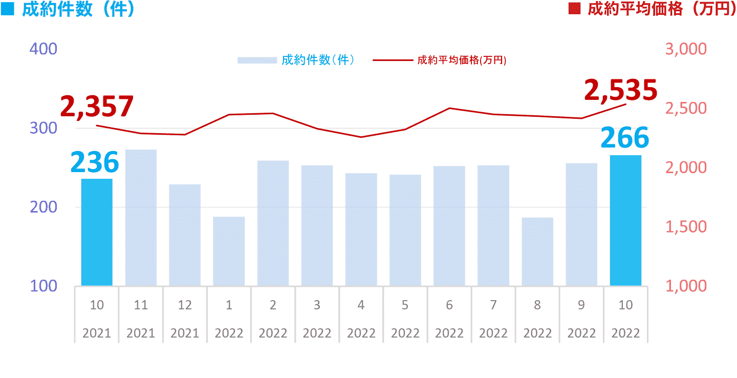 ※本ページ及びグラフは、財団法人東日本不動産流通機構『2022年10月度Market Watch』(全国版)に基づき、東急リバブル㈱が作成いたしました。