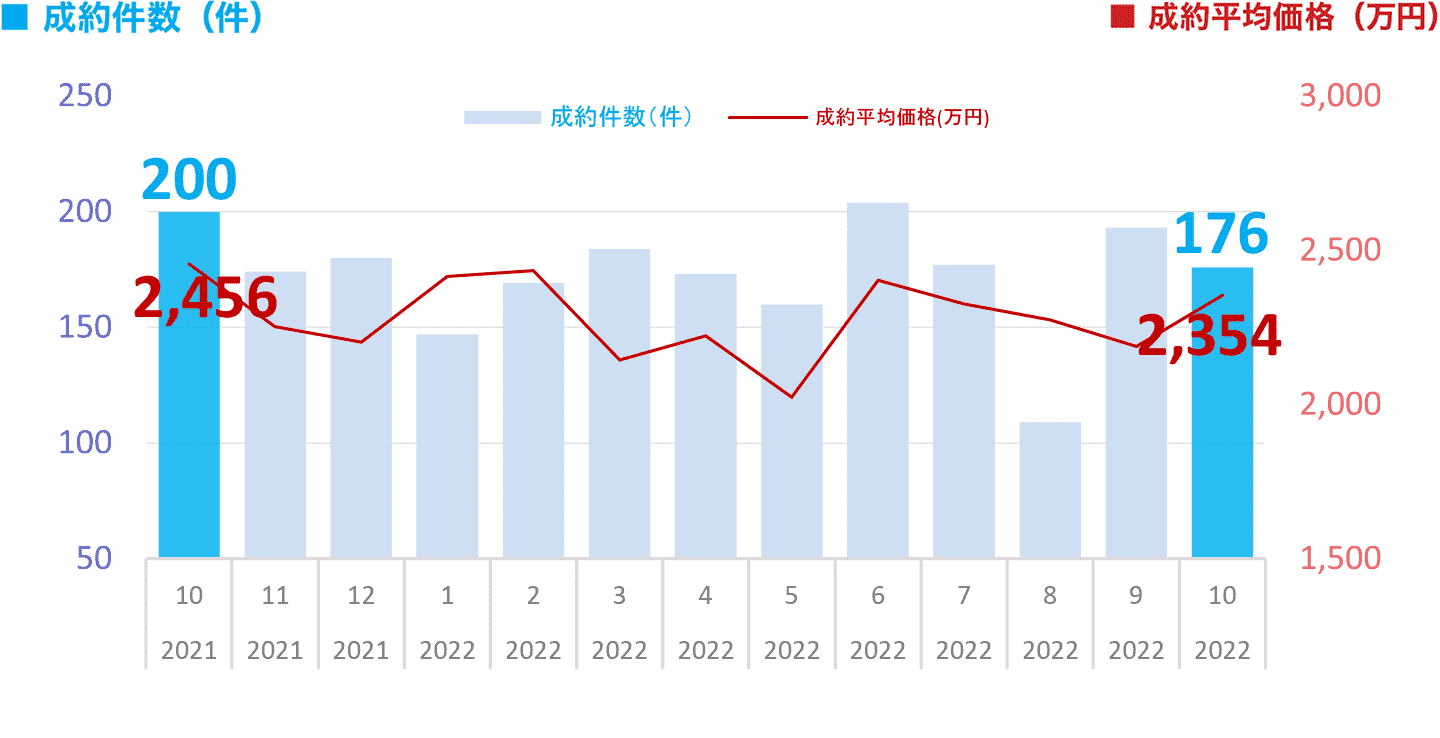 ※本ページ及びグラフは、財団法人東日本不動産流通機構『2022年10月度Market Watch』(全国版)に基づき、東急リバブル㈱が作成いたしました。